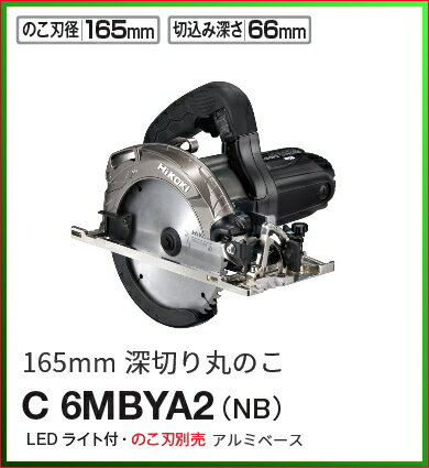 ・HiKOKI/ハイコーキ(日立電動工具) 165mm 深切り丸のこ C6MBYA2(NB) [アルミベース・チップソー別売] 標準付属品:ボックススパナ、六角棒スパナ ・最大切断寸法2寸2分(66mm) のこ刃径165mmで66mmを一発切断。